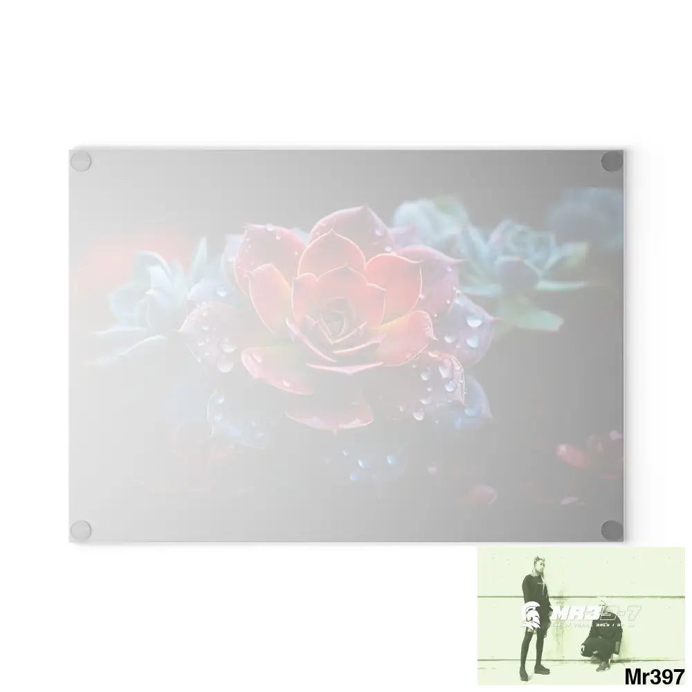 Vibrant Succulent Plant with rain drops Glass Cutting Board