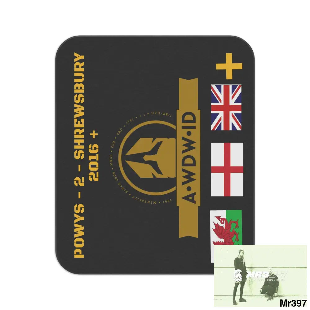 .: Materials: 100% polyester fleece front. 100% black water-resistant oxford-cloth back
