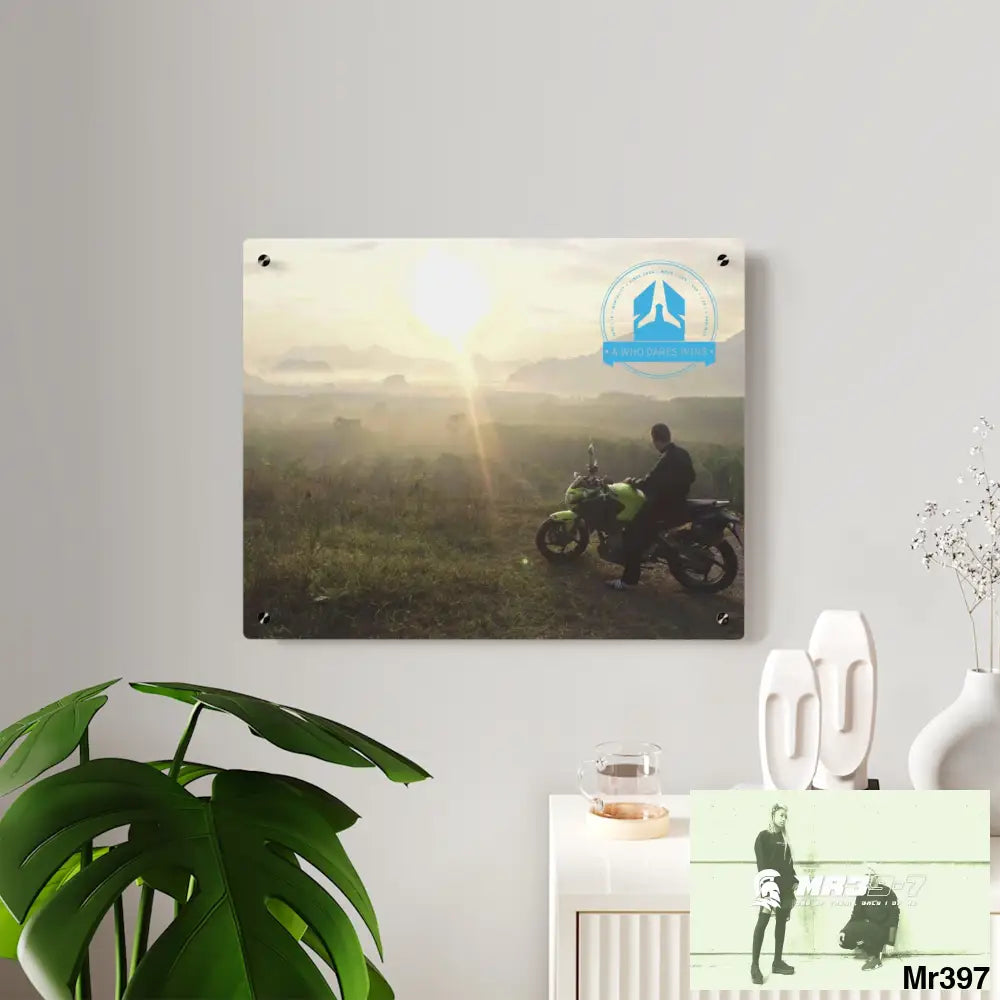 Photo taken by a predator Thinking tjey could harm me not A1-Sparta Acrylic art panels are a modern way to display beautiful and vibrant art that looks like it's embedded in clear glass. They have a clear, glossy acrylic surface and a white vinyl backing. Four silver stand-offs make it very easy to mount to the wall. Make your own original designs and print them on any (or all) of the seven available panel sizes in horizontal and vertical orientations. Square dimensions are available.