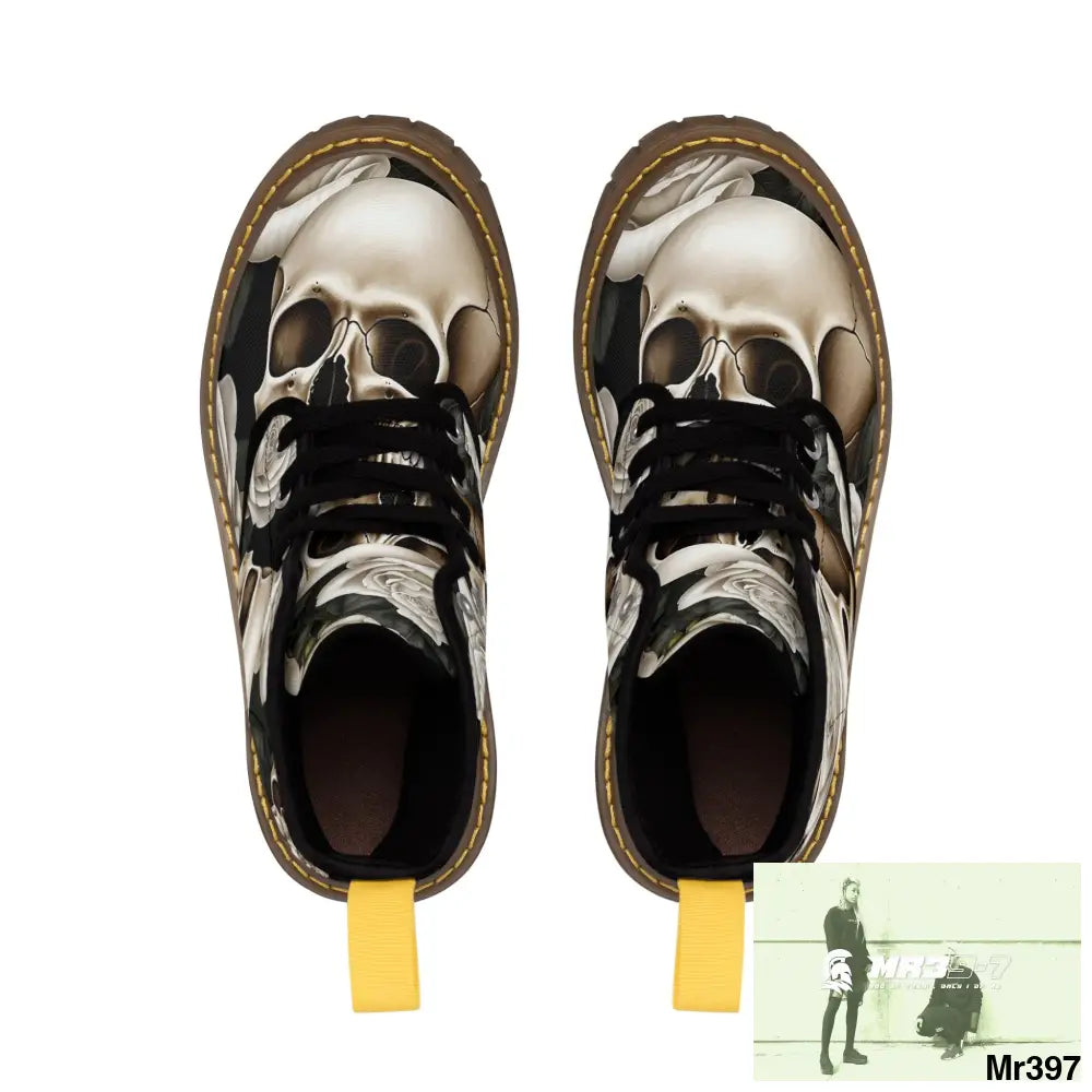 Gothic Skulls and White Roses Women's Canvas Boots
