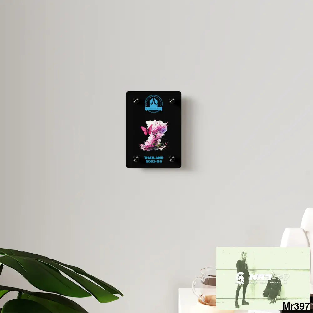 A Who Dares Wins Thailand 2001--09 Pink Butterfly on Ornamental Cherry Tree Branch Acrylic Wall Art Panels