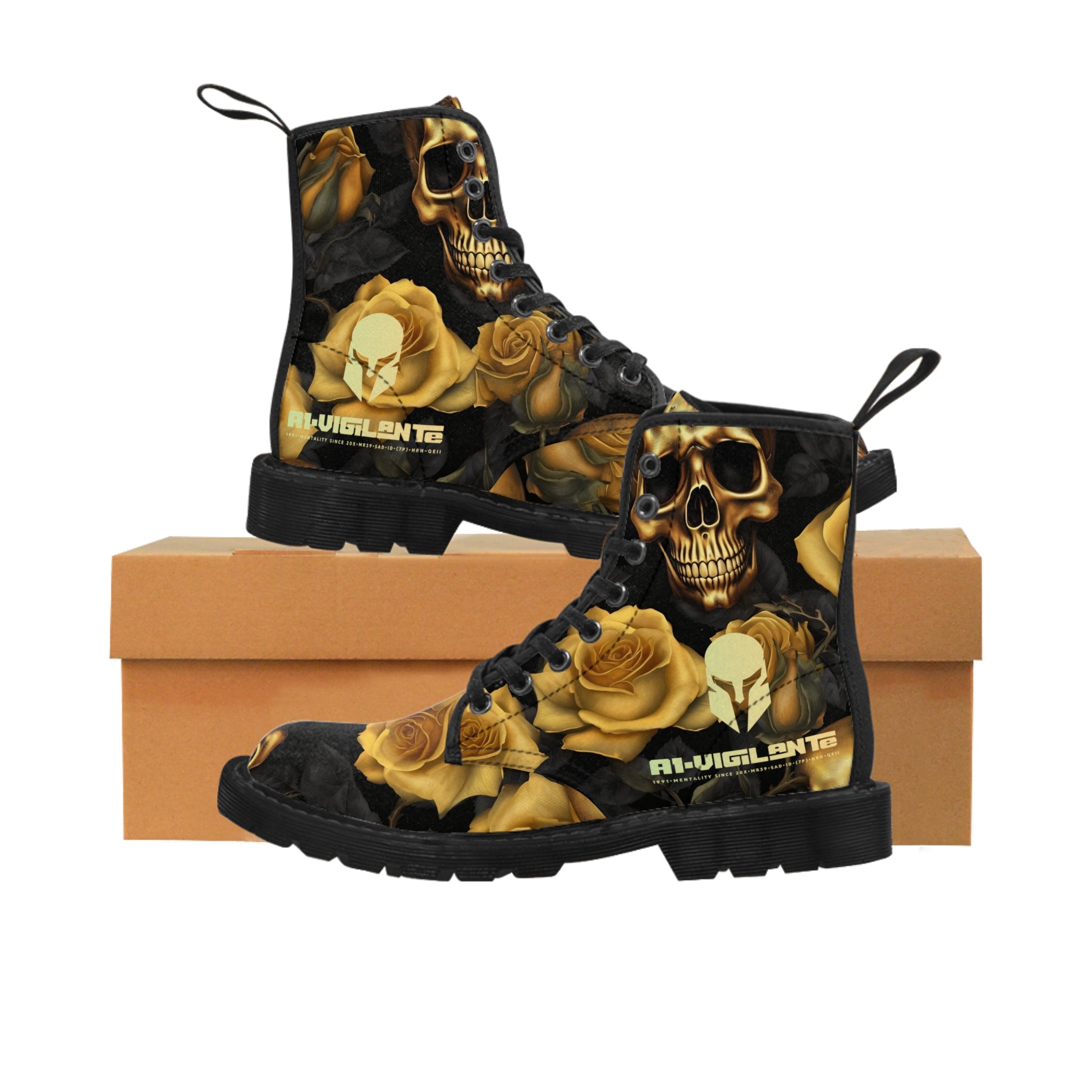 No 2 A1-Vigilante Sparta Gothic Skulls and Gold Roses Canvas Boots AOP